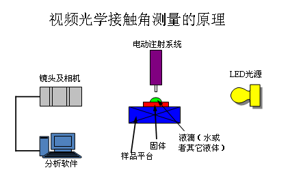 對于理想的平面固體表面,當液滴在表面達平衡后。只有一個符合Young方程的接觸角。但實際固體表面是非理想的,因而會出現滯后現象,致使接觸角的測量往往很難重復。但經過精心制備和處理的表面,有可能得到較重復的數據,特別是高分子的表面。表面的制備和處理的目的是要得到較光滑、干凈的理想表面,但具體的工藝因樣品而異,這里不作更多的介紹。這里主要介紹一些常用的接觸角測定方法,它們都是針對氣—液—固體系的接觸角而設計的。但其中有些方法,只需略加修改,亦適用于液—液—固體系接觸角的測定。測定接觸角有多種方法,可根據直接測定物理量分為四類:⑴靜滴法(角度測量法)、⑵高度、長度測量法⑶力測法⑷透過測量法。前三種適用于連續的平滑固體表面,后一種方法可用于粉末固體表面接觸角的測定。